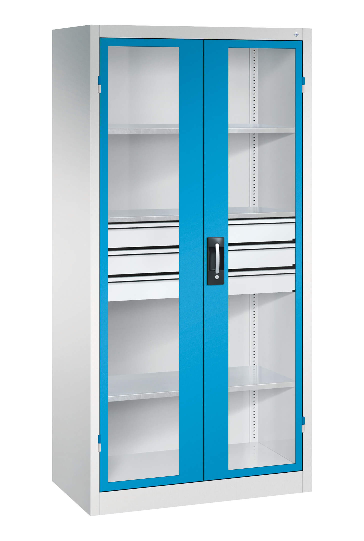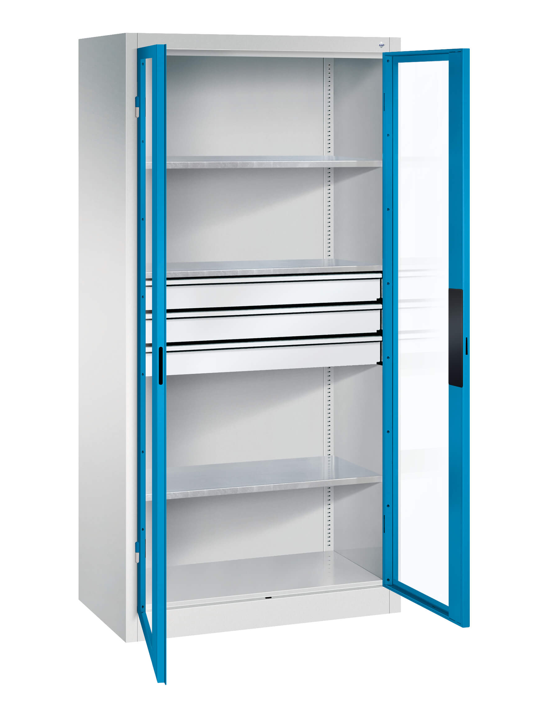 | + | Türen mit Sichtfenster für direkten Schrankeinblick, Zeit- und Kostenersparnis durch mehr Ordnung und Übersicht |