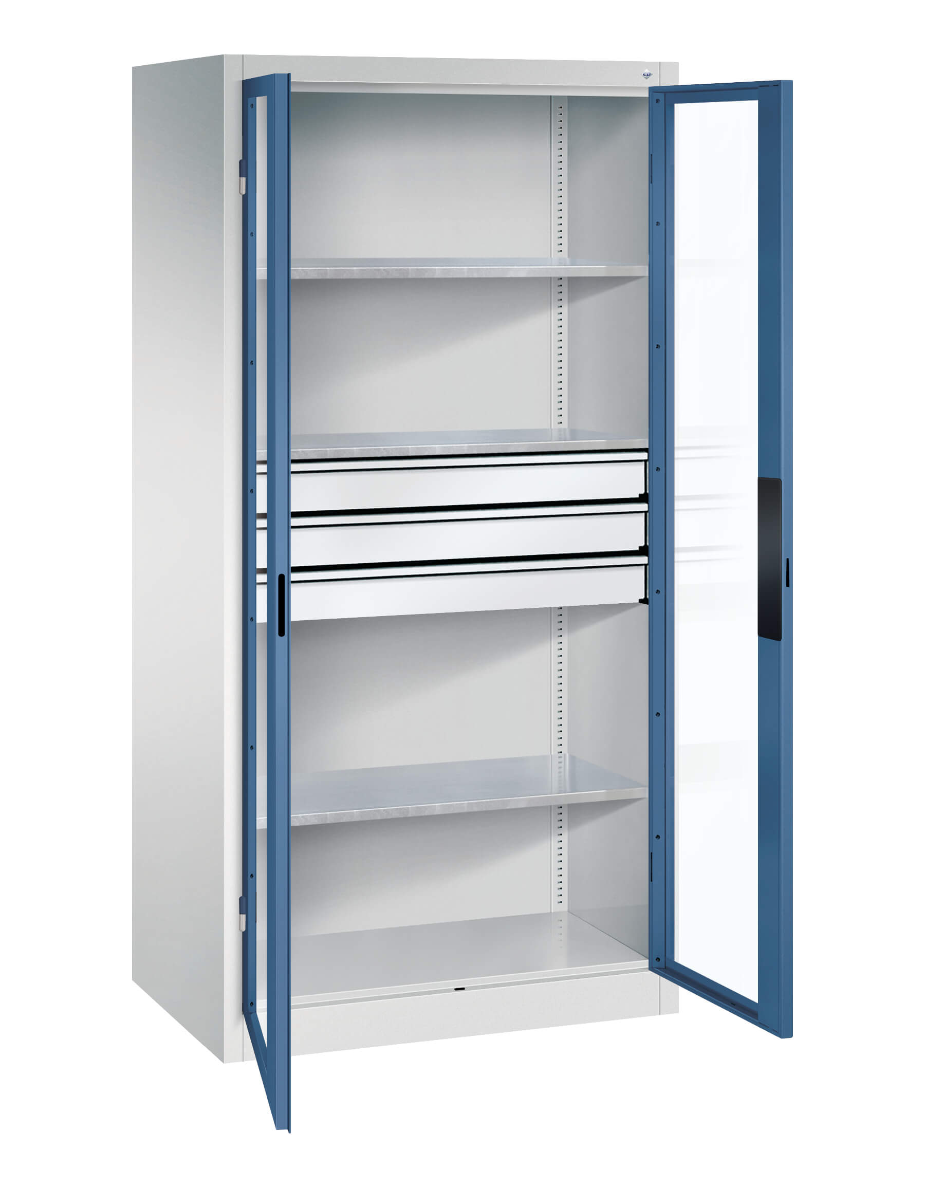 | + | Türen mit Sichtfenster für direkten Schrankeinblick, Zeit- und Kostenersparnis durch mehr Ordnung und Übersicht |