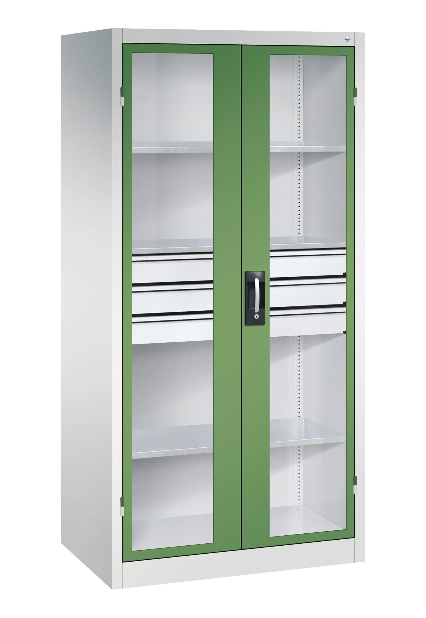| + | Türen mit Sichtfenster für direkten Schrankeinblick, Zeit- und Kostenersparnis durch mehr Ordnung und Übersicht |